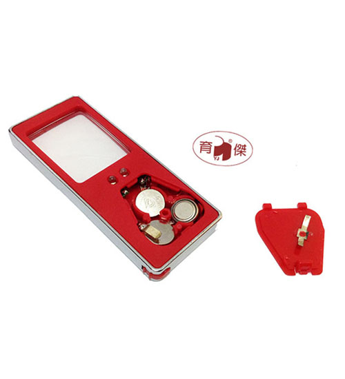 • LED照明放大鏡 No.904711 紅 鏡面尺寸:3.5cmx2.8cm  (附鈕扣電池x3)