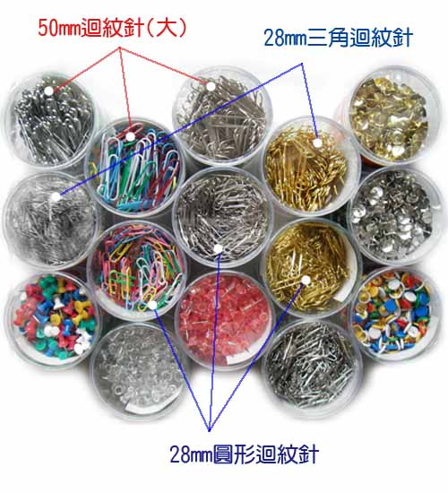 迴紋針 | 圖釘 | 工字釘 | 美式圖釘 | 別針 | 大頭針